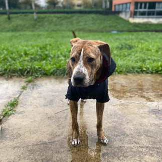Tiene muy buen carácter, es un buenazo. Con compañia, en casa es muy tranquilo. En la calle es bastante curioso, se lleva bien con la mayoría de los perros y es bastante juguetón.